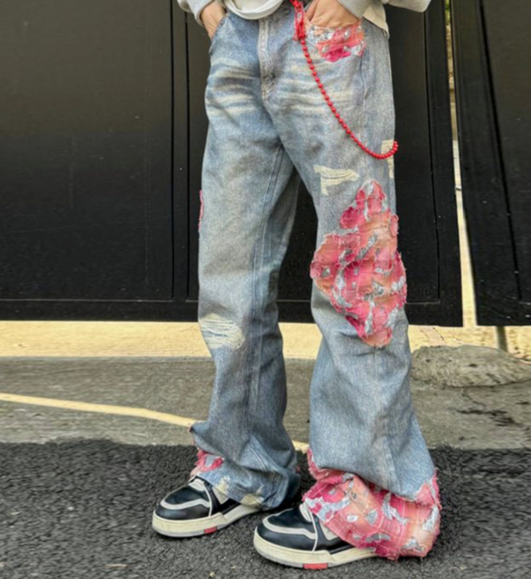 Spring Casual Graphic Men'S Plaid Patch Embroidery Loose Fit Jeans